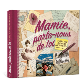 Un cadeau inégalé pour votre grand-mère. Mamie, parle-nous de toi est un livre à compléter qui permet à votre grand-mère d’écrire ses souvenirs depuis son enfance jusqu’au moment présent. Elle l’écrira seule ou avec votre aide en répondant à des questions soigneusement sélectionnées. Ce beau livre deviendra une chronique de sa vie et un trésor inestimable pour votre famille.