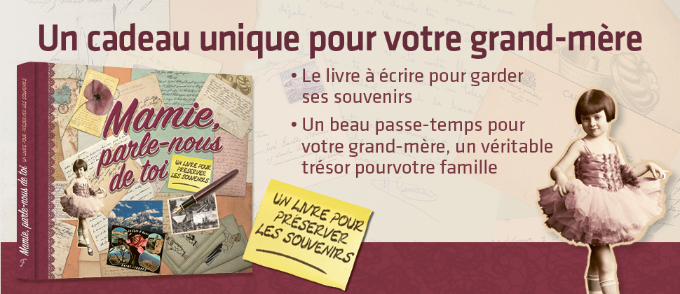 Un cadeau inégalé pour votre grand-mère. Mamie, parle-nous de toi est un livre à compléter qui permet à votre grand-mère d’écrire ses souvenirs depuis son enfance jusqu’au moment présent. Elle l’écrira seule ou avec votre aide en répondant à des questions soigneusement sélectionnées. Ce beau livre deviendra une chronique de sa vie et un trésor inestimable pour votre famille.