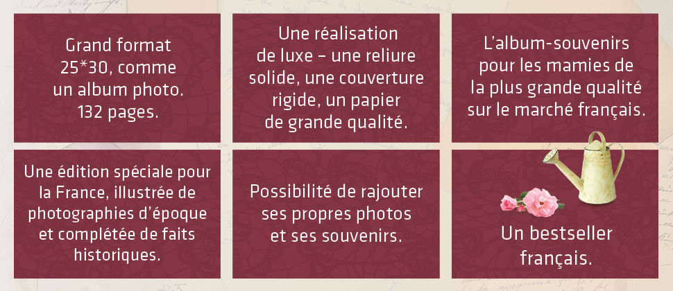 Le livre est illustré d’images et photographies d’époque, support parfait pour reveiller les souvenirs. Il laisse aussi la place à chacun d’ajouter ses propres photos.