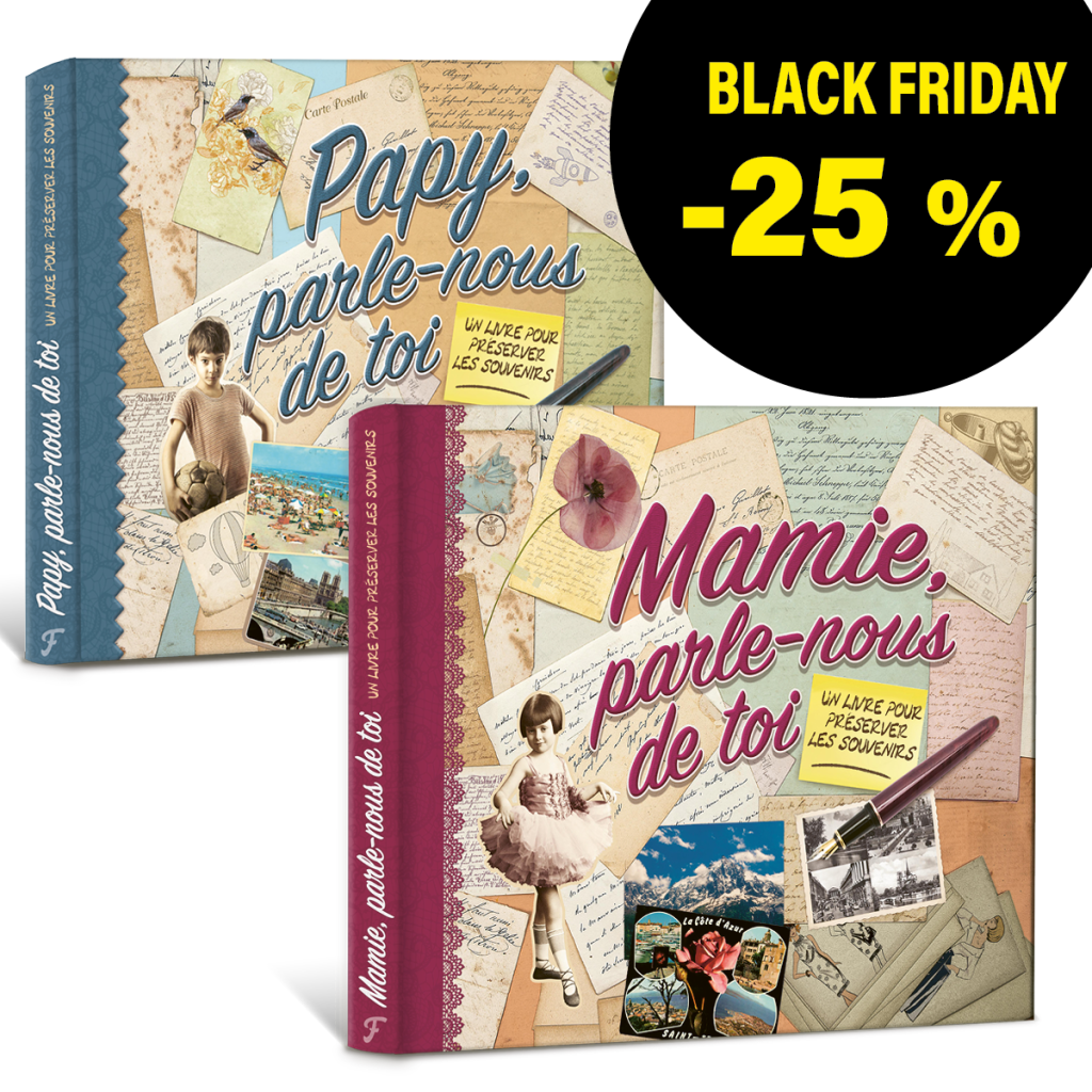 Profitez de notre offre spéciale ! Achetez le coffret cadeau Mamie, parle-nous de toi et Papy, parle-nous de toi avec une réduction de 25 % !