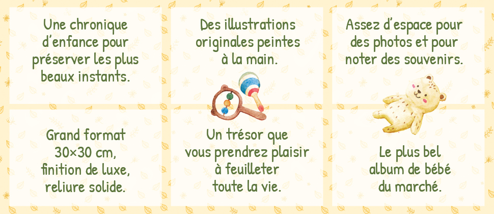 Avec ses 132 pages, son grand format 30 × 30 cm et un papier au grammage élevé, il sera un très joli cadeau de naissance.